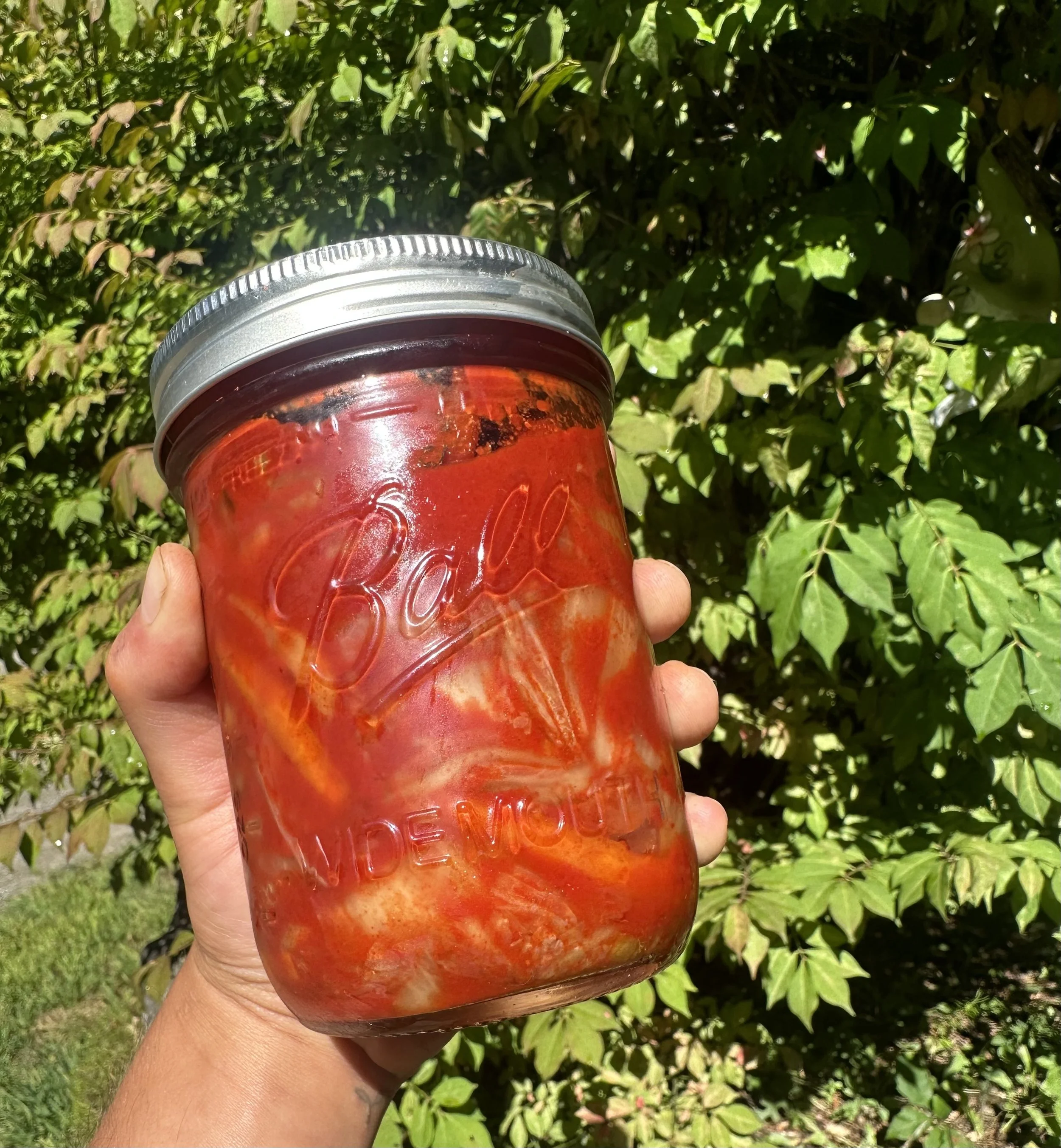A jar of the "OG Kimchi," made with homemade gochujang and vegetables grown at Yonsei Fields and Calyx Farm.